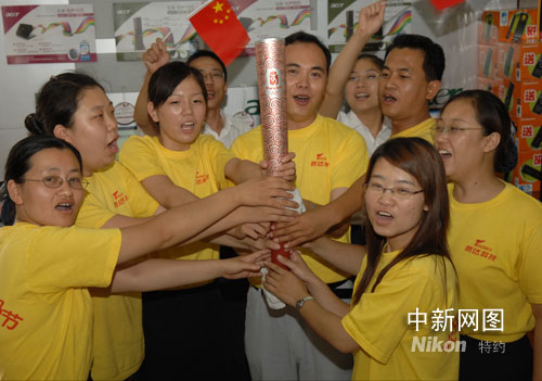 7月26日,河北滄州市某雷鋒志愿者組織的志愿者們親手觸摸到了火炬手曾傳遞過的“祥云”火炬,感悟火炬?zhèn)鬟f精神,激發(fā)干好本職工作的熱情,提高服務(wù)質(zhì)量,以實際行動為奧運加油。 王少華 攝