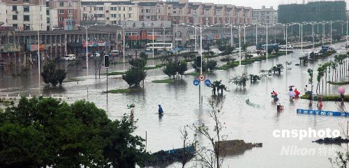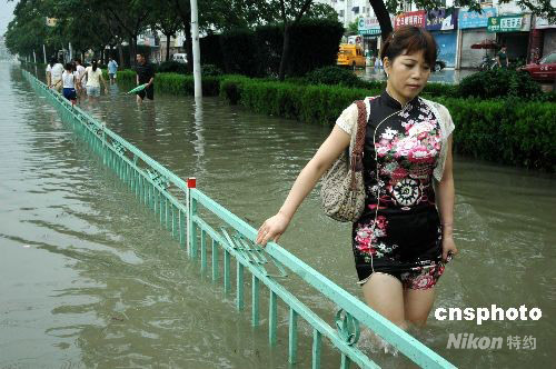 2008年7月31日20時起,受今年第8號臺風 “鳳凰”外圍的云系和風力影響,“鳳凰”雨襲擊安徽巢湖市。至8月1日15時,“鳳凰”雨狂襲安徽巢湖市城區,降雨量已超過240mm以上,造成市內多處低洼地段發生嚴重內澇,部分街道成了一片汪洋,大部分路段被水淹沒,進入市區的高速路口因積水過深臨時封閉,給群眾出行和生活帶來了很大影響。此次長時間的強降水,給該市城區防洪排水帶來壓力。中新社發 徐振華 攝