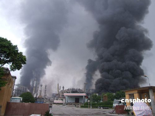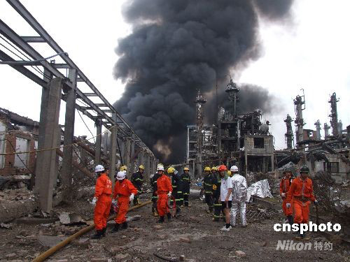 8月26日6時(shí)許,廣西宜州市郊的廣西維尼綸集團(tuán)有限責(zé)任公司車間發(fā)生爆炸并引發(fā)大火,截至當(dāng)日15時(shí)30分,醫(yī)院收治傷員增加至55人,死亡人數(shù)增至5人,失去聯(lián)系人員減至14人。 中新社發(fā) 楊繼武 攝