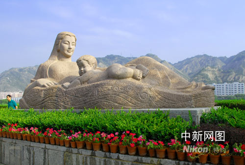 雕塑由甘肅著名的雕塑家何鄂女士創作,北京雕塑廠于1986年4月30日雕成,系一長6米,寬2.2米,高2.6米的花崗巖圓雕,總重40余噸。由“母親”和一“男嬰”組成構圖。