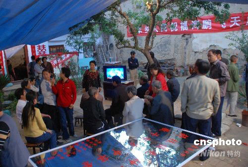 景海鵬的父親特意在自己家的院子里搭起一個棚子,供鄰居和親戚朋友觀看“神七”升空的電視直播。