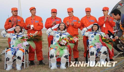 9月28日,神舟七號飛船返回艙順利著落,三名航天員翟志剛、劉伯明、景海鵬在經過15-20分鐘的重力再適應后全部出艙。首先出艙的是翟志剛,第二個出艙的是劉伯明,第三個出艙的是景海鵬。
