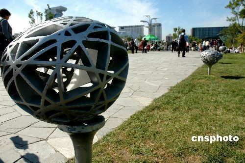 2008年10月11日,免費(fèi)對(duì)外開(kāi)放的國(guó)家體育場(chǎng)“鳥巢”,在周末出現(xiàn)游客“井噴”。“鳥巢”在被20萬(wàn)多游客“擠爆”的同時(shí),遭受了不文明行為傷害,安裝在國(guó)家體育場(chǎng)(“鳥巢”)旁廣場(chǎng)的“鳥巢”照明燈傷痕累累。據(jù)介紹,“鳥巢”景觀燈材質(zhì)采用環(huán)保樹脂材料,奧運(yùn)前夕,“鳥巢”廣場(chǎng)核心區(qū)安了1300多只景觀燈,大“鳥巢”與小“鳥巢”交相呼應(yīng),營(yíng)造出和諧氛圍。中新社發(fā) 梁寶海 攝