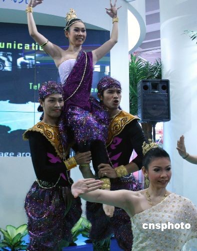 10月23日,在中國廣西南寧舉辦的中國—東盟博覽會上,身著盛裝的泰國演員表演舞蹈進行旅游推介,大受歡迎。中新社發 林艷華 攝