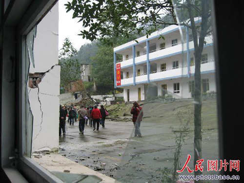 2008年10月,一批來自成都市的游客正在“5·12”汶川大地震“最牛”教學樓地震遺跡內參觀。據悉,“5·12”汶川大地震發生后,一條地震斷裂帶剛好從四川省彭州市白鹿鎮中心校校區內穿過,從而導致一棟新建教學樓被整體抬高近3米,樓體依然屹立原地不倒;而在其旁邊的教師宿舍完全垮塌,舊教學樓、辦公樓均成危房,與“長高”的新教學樓相對10多米遠、且在同一時間施工建設、同一地面高度的一棟四層新教學樓,成了鮮明的參照物。會“長高”的教學樓便被當地人稱作是:“5.12”汶川特大地震“最牛”的教學樓。彭州市相關部門特將此校教學樓地震遺跡作為旅游資源開發利用。目前,每天都有二三百人的游客來此觀光“最牛”的教學樓地震遺跡。