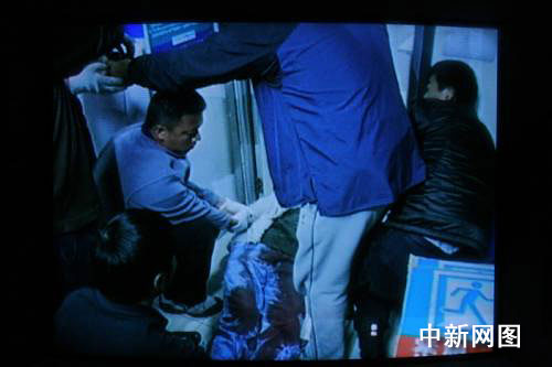 11月29日上午9時37分,一男子手持匕首在昆明市龍泉路家樂福超市持刀刺傷2名顧客和一名促銷員,隨后將一名趕來現場救治傷員的醫護人員挾持。經查,該男子名叫陸志文,39歲,此前曾有犯罪前科。圖為該男子被警方擊斃。