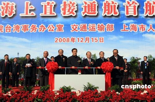 12月15日,海峽兩岸海上直接通航首航儀式在上海洋山港舉行,中遠(yuǎn)公司的“遠(yuǎn)河”號(hào)和中海公司的“新非洲”號(hào)從洋山港啟航執(zhí)行首航任務(wù)。當(dāng)日,海峽兩岸海上、空中直航及直接通郵在兩岸同步啟動(dòng)。中新社發(fā) 湯彥俊 攝