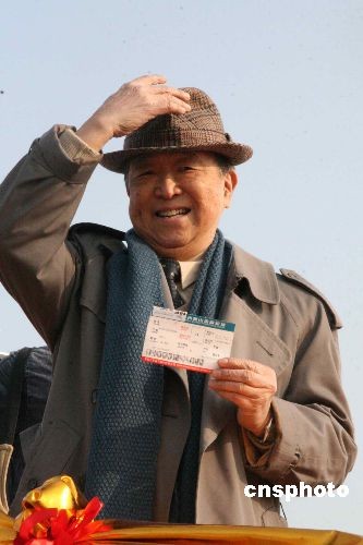 七十六歲的金先生告訴記者,他很幸運地拿到了杭州到臺灣首發(fā)直航班的一號票。“作為第一號乘員,我此刻非常激動。”臨登機前,金先生還不忘揮舞著這張?zhí)厥獾臋C票,向前來送行的人致意。中新社發(fā) 汪恩民 攝