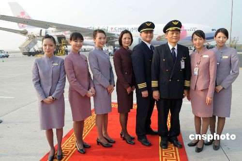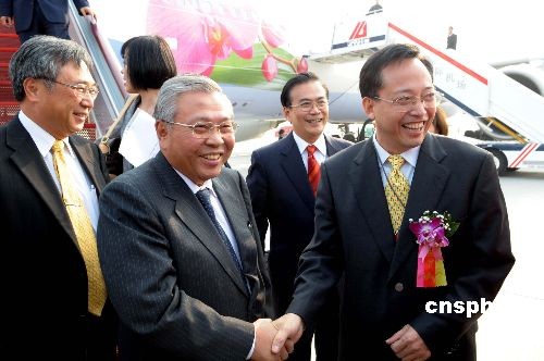 十二月十五日下午,一架蝴蝶蘭彩繪機降落深圳寶安國際機場,中華航空公司成為兩岸常態(tài)包機中首家抵達深圳航點的臺灣航空公司,深圳市政府副市長張思平在機場迎接華航董事長魏幸雄一行。中新社發(fā) 陳文 攝