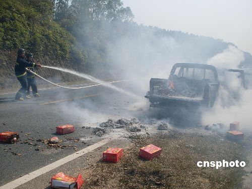 1月9日12點30分左右,廣西欽州市境內一輛卡車突然起火,隨后引燃附近近千畝甘蔗林。欽州消防部門迅速趕到現(xiàn)場滅火,2個小時后大火被撲滅,事故無人員傷亡。中新社發(fā) 劉富強 攝