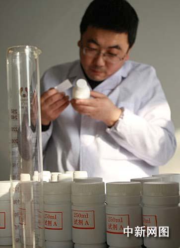 1月9日,檢測液態奶中是否含有三聚氰胺的化學法快速檢測試劑盒在蘭州上市。這項技術由蘭州大學研發,并于2008年11月7日通過了甘肅省科技廳組織的成果鑒定。生產商甘肅欣慶環?萍加邢挢熑喂窘榻B,這種試劑盒不僅適用于乳品生產企業、基層奶站、基層質檢站等部門,而且可以進入家庭使用。據悉,日前,國內乳品公司已和生產商簽定了多批訂單,部分試劑盒即日發往省外。