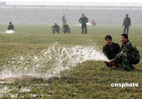 2月4日,河南省禹州市民兵預備役人員在小呂鄉小呂村幫助村民抗旱澆麥。當日,河南省禹州市人民武裝部組織民兵預備役人員成立30個民兵抗旱服務隊,深入到全市部分鄉鎮,幫助村民抗旱澆麥。據悉,2月3日,河南省軍區下發通知,要求全區各單位迅速啟動應急預案,充實抗旱裝備器材,組織相關業務技能培訓,主動與地方政府及水利、氣象等部門溝通聯系,迅速組織民兵預備役人員投入抗旱澆麥。中新社發 牛書培 攝