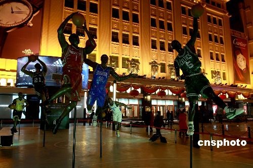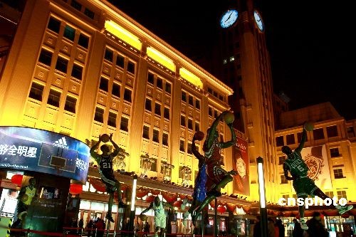 2月6日晚,“NBA全明星”現身北京王府井大街,吸引不少市民的目光。隨著元宵節、情人節的臨近,北京各大商家已開始布置門面,節日商戰悄然打響。中新社發 鄭雄增 攝