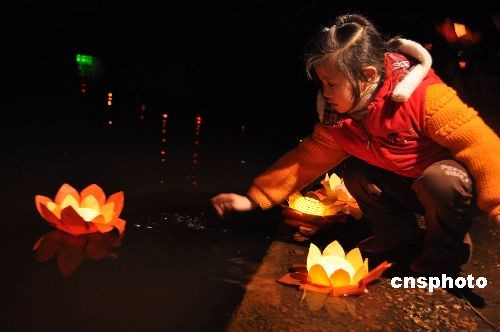 2月9日晚,湖南長(zhǎng)沙到處充滿著元宵佳節(jié)的喜慶氣氛,來(lái)自全省各地的數(shù)千游客聚集在文明湖邊,將一盞盞心愿荷燈托在手中許上新年心愿,然后放漂。中新社發(fā) 肖前輝 攝
