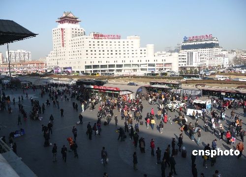 2009年2月11日,北京西站廣場旅客如織,再次迎來春運客流高峰。據悉,此次客流高峰的旅客主要是返城民工及返校學生。 中新社發 玉龍 攝