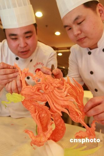 2月10日,正在北京舉行的中國非物質文化遺產傳統技藝大展上,中國飲食類非物質文化遺產首次亮相。參展的有北京、上海、山西、山東、江蘇、福建、河南、陜西、內蒙古等9個省(區、市)的中華老字號,涉及國家級和省級“非遺”項目近60個。中新社發 陳曉根 攝