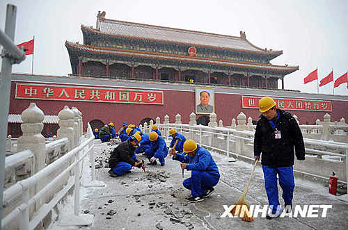 天安門(mén)外金水橋保護(hù)修繕工程于2月18日正式開(kāi)工。本次工程主要是對(duì)天安門(mén)南側(cè)的外金水橋進(jìn)行修繕,涉及橋面的修補(bǔ)面積約為327.69 ㎡,主要修繕內(nèi)容是對(duì)金水橋中心主橋(御路橋)的橋面加鋪保護(hù)性棧道,避免今后參觀(guān)游人對(duì)橋面造成損傷。本次修繕過(guò)程中并不會(huì)完全封閉施工,具體情況會(huì)根據(jù)施工需要采取臨時(shí)性措施,以方便游人。工程預(yù)計(jì)2009年5月1日竣工。財(cái)政撥款投資預(yù)算為94.64萬(wàn)元。