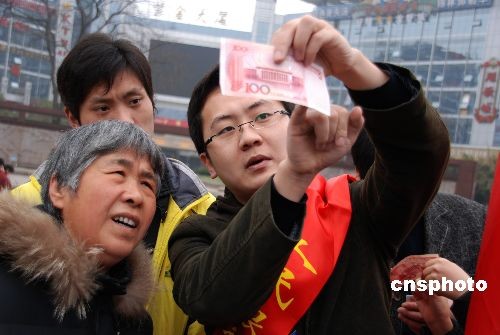 2月24日上午,反假貨幣“壁壘行動”在江蘇鎮(zhèn)江大市口廣場啟動。據悉,由中國人民銀行鎮(zhèn)江市中心支行組織全市各金融機構以及公安部門將進行為期三個月的反假貨幣宣傳活動,活動還將成立反假宣傳小分隊深入到社區(qū)、商場、農貿市場、車站、農村等地向群眾宣傳反假幣知識和相關法律常識。中新社發(fā) 封波 攝
