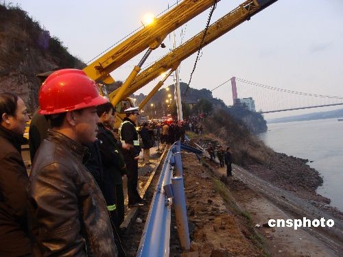 2月26日16時(shí)10分左右,湖北宜昌境內(nèi)發(fā)生一起車禍,一輛客車與一輛轎車相撞后翻入長(zhǎng)江。目前,已有11人獲救,1名小孩不幸遇難身亡。中新社發(fā) 郭曉瑩 攝