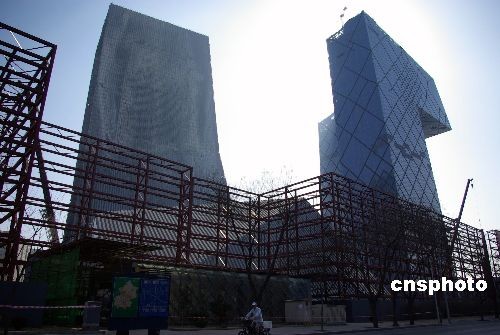 2月27日,工人們正在給央視新址火災現場搭建護欄。據專家勘察,央視新址北配樓主體結構未受嚴重影響,專家建議采取剝除“外衣”局部修復的方式維修該樓,估計年內能修復完成。 中新社發 九州 攝