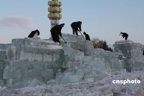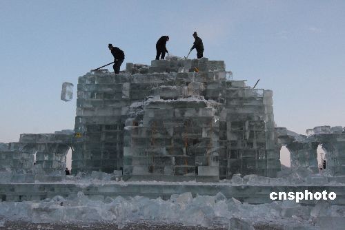 2月28日,施工人員在牡丹江市城區(qū)冰堡旅游景點(diǎn)拆除融化的冰雕作品。“立春”過(guò)后,素有“雪城”之稱(chēng)的黑龍江省牡丹江市氣溫回升較快,城區(qū)內(nèi)的各大冰雪旅游景點(diǎn)的冰雪作品開(kāi)始融化,失去寒冬里的風(fēng)采。從當(dāng)日起,城區(qū)冰雪旅游景點(diǎn)管理部門(mén)對(duì)融化的冰雕作品進(jìn)行拆除。中新社發(fā) 莊文斌 攝