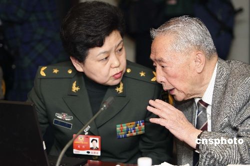 3月4日,全國政協(xié)十一屆二次會議進(jìn)行分組討論,審議政協(xié)全國委員會常務(wù)委員會工作報告和提案工作情況報告。圖為全國政協(xié)委員、著名外科專家吳蔚然(右)與全國政協(xié)委員、中國人民解放軍總醫(yī)院副院長范利在分組討論上交談。中新社發(fā) 盛佳鵬 攝