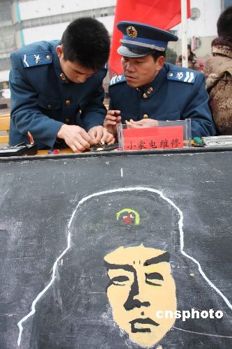 3月5日,青年志愿者在蚌埠火車站廣場參加“學雷鋒”獻愛心便民服務活動。當日是全國“學雷鋒日”,共青團安徽蚌埠市委舉行了“爭做志愿者、創造新生活”為主題的志愿服務統一行動,部隊、機關、學校、醫院、企業等二十多個單位組成多個青年志愿便民服務隊,深入駐地農村、街道、社區、敬老院、兒童福利院等地,積極開展醫療巡診、法律咨詢、計生宣傳、心理咨詢、環保宣傳、家電維修、安全消防、用電知識等多種服務活動。中新社發 耿國慶 攝