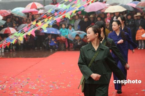 3月8日,四川丹棱縣的農(nóng)村姑娘冒雨進(jìn)行時(shí)裝秀表演。當(dāng)日,四川丹棱縣農(nóng)耕文化展在該縣丹棱鎮(zhèn)興隆村拉開(kāi)帷幕,當(dāng)?shù)剞r(nóng)村姑娘冒雨進(jìn)行時(shí)裝秀表演,在展示各個(gè)時(shí)期農(nóng)村服裝變化的同時(shí),慶祝“三八”婦女節(jié)。中新社發(fā) 堯遙 攝