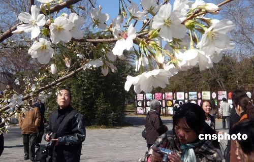 3月25日,北京玉淵潭公園第21屆櫻花節(jié)開(kāi)幕,活動(dòng)以“春到玉淵潭”為主題,可供觀賞的櫻花有20個(gè)品種近2000株,形成了“在水一方”、“櫻棠春曉”等“櫻花八景”。櫻花園內(nèi)以“詩(shī)情畫(huà)意”為基調(diào),搭建詩(shī)畫(huà)屏風(fēng),結(jié)合賞花和詠春詩(shī)詞、散文,營(yíng)造濃郁的賞花情。中新社發(fā) 錢興強(qiáng) 攝