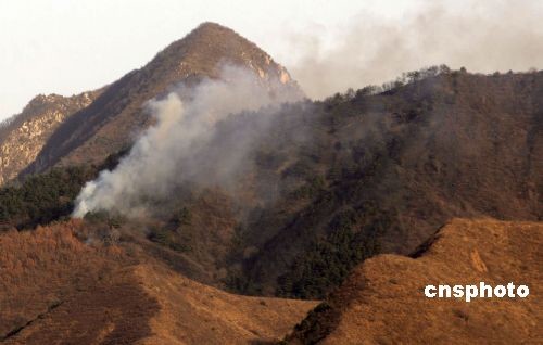 3月25日下午1時許,北京密云縣太師屯鎮二道河子村南側山林起火,附近村民和多個鎮撲火隊前往現場滅火。因遇大風,滅火期間又發生復燃,至昨晚11時許,大火被撲滅,過火面積達上千畝,暫未出現人員傷亡情況。起火原因仍在調查中。中新社發 曉村 攝