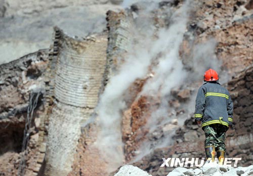 目前,救援工作仍在進行中。由于石灰窯窯口前的臺地面積很小,且有一條大裂縫,消防車一時難以駛入;消防人員用高壓水槍作業時,水一噴上去窯體即不斷塌方,救援難度較大。