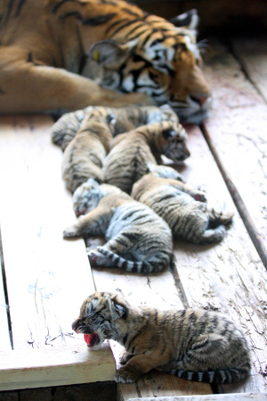 2009年,虎園預計將有百余只東北虎出生,東北虎種群數量將過千只。(白林鶴)