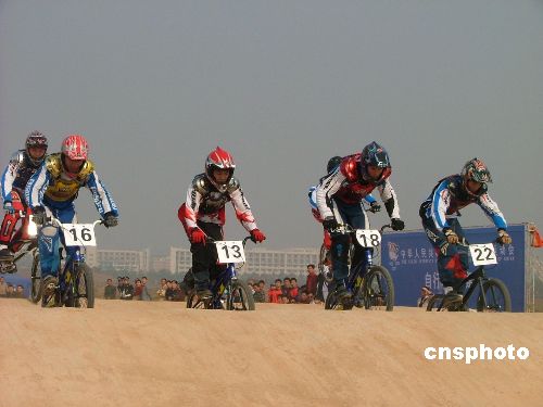 十月二十二日上午,第六屆全國城運(yùn)會(huì)BMX(小輪車)男子越野賽在洛陽賽區(qū)舉行,運(yùn)動(dòng)員們經(jīng)過幾個(gè)回合的預(yù)賽較量后進(jìn)入決賽,香港運(yùn)動(dòng)員王史提芬率先奪得男子冠軍,煙臺市的孫越、大同市的任超分列二、三名。中新社發(fā) 史寶銀 攝