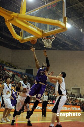 10月30日晚,在山西省太原市濱河體育中心2007-2008年CBA聯賽第二輪比賽中。山西中宇主場以102-95戰勝上海西洋,山西中宇取得新賽季首場勝利。中新社發 張云 攝