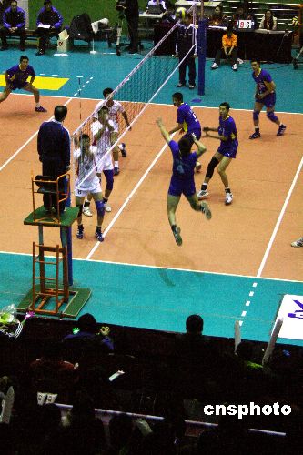 12月15日,2007-2008賽季全國男排聯賽遼寧對八一的比賽在錦州體育館舉行,最終遼寧隊苦戰五局以3比2力挫八一。中新社發 李張建 攝