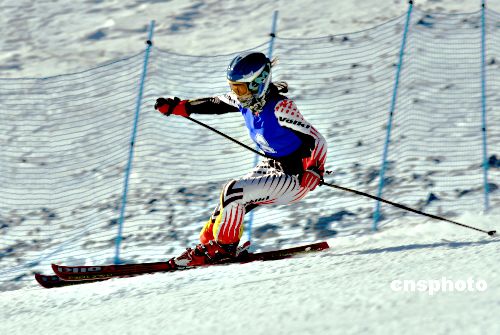 1月20日上午10時(shí),在哈爾濱亞布力高山滑雪舉行的女子超級(jí)大回轉(zhuǎn)滑雪比賽,經(jīng)過(guò)緊張角逐,齊齊哈爾選手夏麗娜獲得冠軍,成績(jī)56.9秒。中新社發(fā) 姚庭山 攝