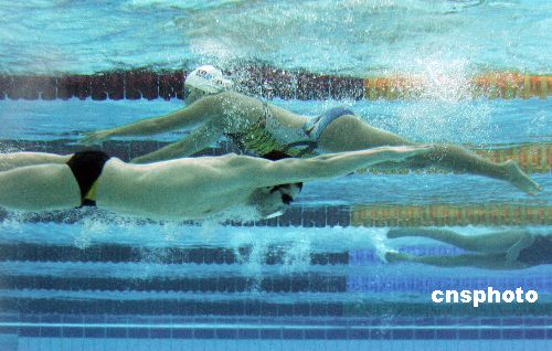 1月29日,參加好運北京——中國游泳公開賽的各國選手在剛剛落成的北京奧運會游泳場館——國家游泳館(水立方)內訓練。為了全面檢測水立方的功能,中國游泳公開賽將于1月31日在這里舉行。中新社發 任晨鳴 攝