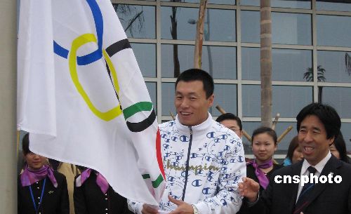 2月11日,由國際奧委會委員吳經(jīng)國先生創(chuàng)辦的中國首家奧林匹克博物館在廈門開館。圖為國際殘奧會首位形象大使、三屆殘奧會跳高冠軍得主侯斌為博物館升起五環(huán)旗。中新社發(fā) 陳悅 攝