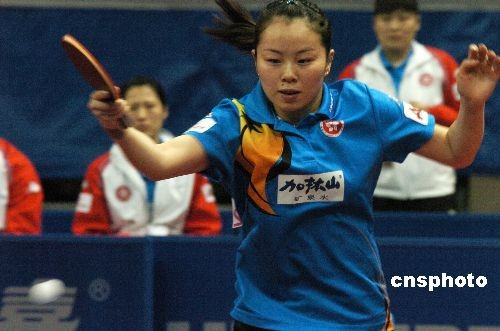 二十六日下午,在第四十九屆世界乒乓球錦標賽中,中國香港女隊以三比零輕松戰勝德國隊。中新社發 柯小軍 攝