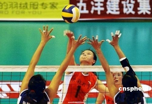 3月12日,2008安踏全國女排錦標賽冠軍爭奪戰(zhàn)在江蘇太倉拉開戰(zhàn)幕。東道主江蘇女排以3比0(25-19、25-14、25-23)擊敗八一女排,獲得女排錦標賽冠軍。中新社發(fā) 姜振華 攝