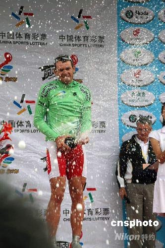 第七屆環青海湖國際公路自行車賽七月十四日舉行第四賽段比賽。在從青海湖鳥島至西海鎮的比賽中,丹麥隊選手亞歷克斯·拉斯穆森奪得第一名。中新社發 齊彬 攝