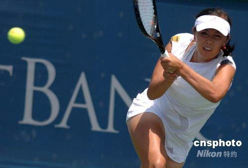 當地時間7月22日,華美銀行杯女子網球公開賽(WTA巡回賽之一)上,中國選手彭帥以2比0輕松戰勝美國選手朱莉·迪蒂晉級第二輪。第二天,彭帥將迎戰4號種子、俄羅斯名將薩芬娜(WTA排名第9)。包括揚科維奇((WTA排名第2)、小威廉姆斯(WTA排名第5)等世界女網名將參加了本次女子網球公開賽,其中有近30名選手將參加北京奧運會比賽。中新社發 張煒 攝
