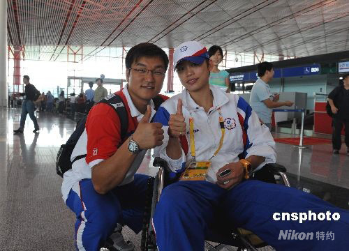 隨著第29屆奧運會落下帷幕,從8月25日起,首都機場迎來各國運動員、工作人員和游客集中離京的高峰日。當日,離京的奧運航班有260架次,人員超過1萬人次。預計隨后兩天,將有約5000名奧運大家庭成員離京。圖為25日首都機場T3航站樓,在比賽中受傷的中華臺北代表團跆拳道選手蘇麗文與隊友即將離京。中新社發 李學仕 攝