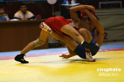 9月27日,運動員在進(jìn)行自由式摔跤比賽。當(dāng)日,全國男子自由式摔跤冠軍賽在河南許昌開賽,來自全國各地的340余名運動員在為期3天的比賽中展開角逐,比賽采用單敗淘汰全復(fù)活賽制,分別進(jìn)行資格賽、淘汰賽等。本次摔跤比賽由國家體育總局舉摔柔運動管理中心主辦,河南省體育局和許昌市體育局承辦。中新社發(fā) 牛書培 攝
