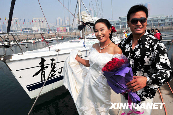 10月15日,北京奧運會女子RS-X級帆板金牌獲得者殷劍重返給她帶來好運的青島奧帆中心拍攝婚紗照。新婚在即,她特意選擇這片自己征戰并獲得成功的賽場上與親密愛人留下“事業見證愛情”的美好紀念。