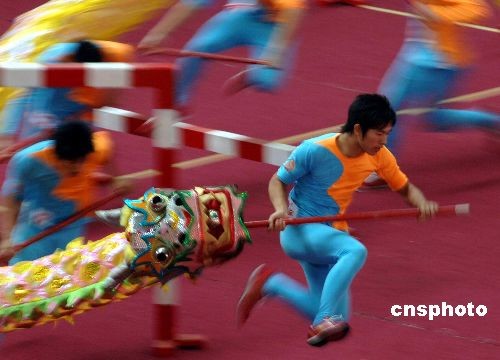 十月三十日,第六屆全國農運會舞龍舞獅比賽高潮迭起,給賽事舉辦地福建泉州石獅市觀眾帶來出神入化的美感。共有十三支來自天南地北的舞龍隊,在“競速舞龍”賽中使出渾身解數競爭桂冠。中新社發(fā) 鄭祚聲 攝
