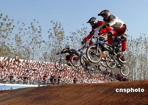 2008年11月10日,由國家體育總局自行車擊劍運動管理中心主辦、江蘇省宿遷市人民政府承辦的“洋河藍色經典”全國自行車BMX(即小輪車)冠軍賽在宿遷開賽。來自全國16個省市小輪車專業隊、俱樂部,代表著我國BMX競速最高水平的100余名運動員,參加了成年男子、成年女子、青年女子組的比賽。2008年全國BMX小輪車冠軍賽共分五站進行,11月10日~12日的第一站、第二站比賽在江蘇宿遷舉行。中新社發 柏志勇 攝
