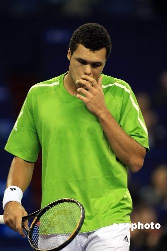 11月11日,在上海旗忠網(wǎng)球中心進行的上海大師杯金組單打比賽中,本屆最年輕的大師、阿根廷的德爾-波特羅以2比0力克法國的“阿里”特松加,取得在大師杯中的首場勝利。中新社發(fā) 湯彥俊 攝