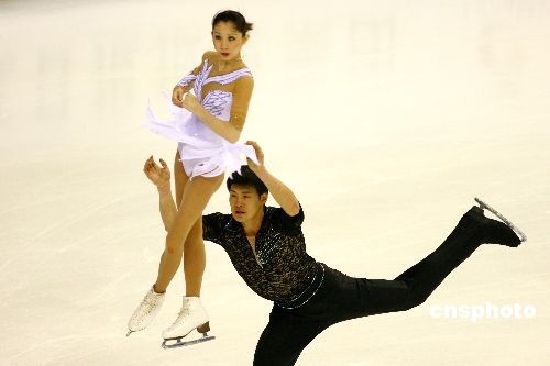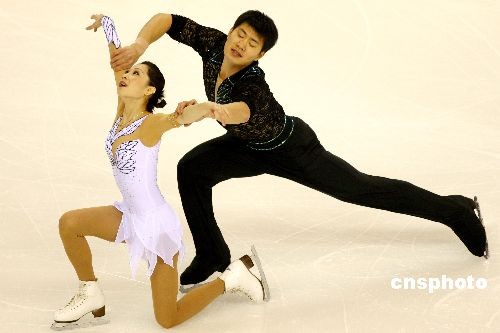 2月21日晚,大冬會花樣滑冰比賽在哈爾濱國際會展中心體育館展開了雙人短節目的爭奪,中國隊頭號種子張丹/張昊首次登場發揮出色,暫列短節目第一位,次日將進行雙人自編動作的角逐。中新社發 富田 攝