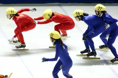 2月23日,第24屆大冬會短道速滑比賽全部結束,在女子3000米接力比賽的爭奪中,中國隊憑借著強大的實力,以4分07秒119順利奪冠,此前已經奪取500米和1000米金牌的劉秋宏,順利成為三冠王。中新社發 富田 攝